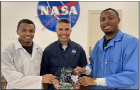 “What we are doing here at Langston is supporting the Artemis Mission by educating our students in the rocketry and the ROCKON Project,” says Mr. White the primary mentor for the project. Mr. White works with Grant Consortium Director Dr. Howard-Smith along with Dr. Davis, Dr. Reid, and Dr. Fondjo to be mentors and support the students participating in the ROCKON Project. In which Langston University students build a real-sounding rocket payload and launch it on a two-stage Terrier-Orion rocket into outer space. A sounding rocket payload is a rocket payload that contains data collection devices or a science experiment to be done once in space. A two stage Terrier-Orion rocket is a rocket designed to use the Terrier booster rocket to launch from Earth but once the Terrier rocket runs out of fuel the rocket will separate exposing the Orion rocket engine which will start up allowing the rocket to fly even higher without the extra weight from the Terrier engine and fuel tank.